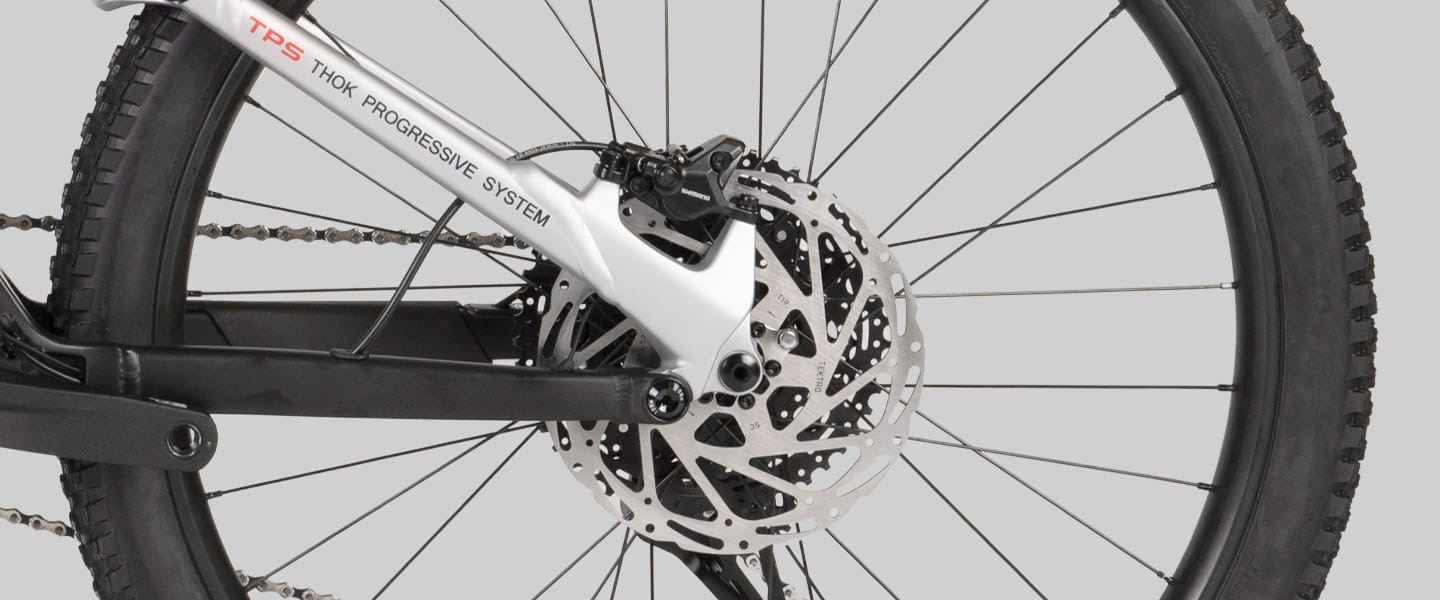 The MIG E-XPLORER’s THOK Progressive System (TPS) geometry provides outstanding stability on descents and precision on technical climbs. Enjoy a natural riding feel that keeps you in control at all times.